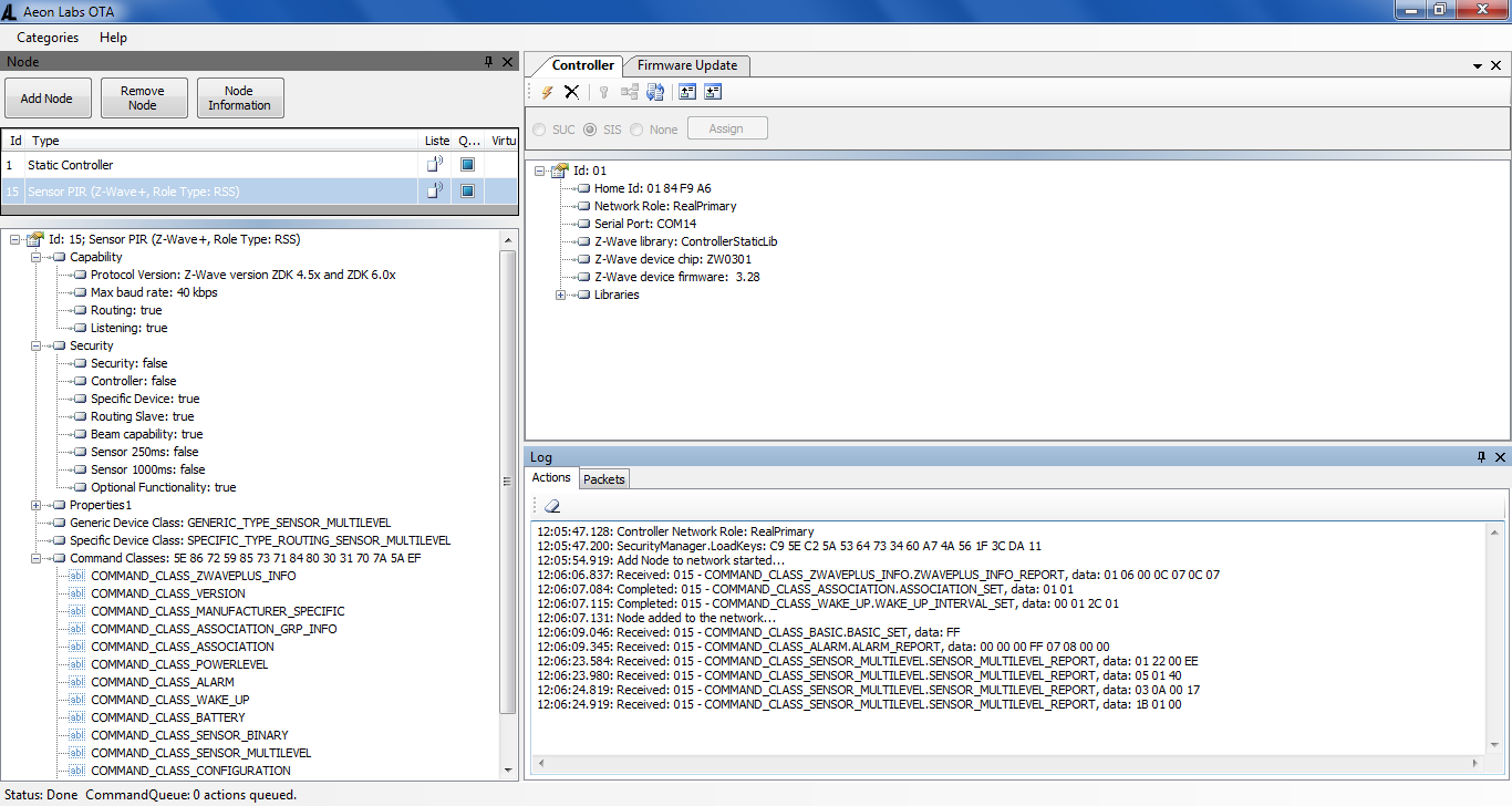 Zestaw funkcji oferowanych przez urządzenie: - czujnik ruchu (PIR) - czujnik temperatury - czujnik wilgotności - czujnik oświetlenia (jasności) - czujnik UV - czujnik wstrząsów (tylko jako czujnik naruszenia) - szacowanie stanu baterii (co raczej nie dziwi, bo ta funkcja to standart w urządzeniach zasilanych bateryjnie) Na rynek europejski jest przeznaczona wersja z ZW100-C ("tradycyjnie" dla tej firmy rejon europejski oznaczony literą "C", nie kupujemy ani ZW100-A, ani ZW100-B przeznaczonych na inne rynki!). W zestawie otrzymujemy: - multisensor wraz z klapką baterii - instrukcję - stopkę mocowania - 2 wkręty umożliwiające montaż na powierzchni umożliwiającej mocowanie w ten sposób - kawałek dobrej taśmy dwustronnej umożliwiającej montaż przez przyklejenie - kabel USB->microUSB o specyficznym kształcie (kątowy wtyk micro) do zasilania urządzenia Przy tej cenie urządzenia byłem mocno zawiedziony brakiem baterii w zestawie, a do zasilania mogą służyć 2 ogniwa CR123A. Może producent po negatywnych doświadczeniach użytkowników z poprzednimi modelami multisensorów chce w ten sposób sugerować zasilanie USB jako metodę domyślną? Swoją drogą zasilanie jest rozwiązane dość ciekawie - w przypadku zasilania ogniwami litowymi można użyć tylko jednego ogniwa - wtedy władamy je do slotu nr 1, oczywiście trzeba się liczyć z czasem pracy urządzenia o połowę krótszym niż na 2 ogniwach. Paru znajomym takie dodatkowe akcesorium się bardzo podobało (nie zaszalałem na to), a jest to ramka umożliwiająca "ukryty" montaż czujnika w ścianie lub suficie (z płyty G-K): https://aeotec.com/recessed-sensor Ciekawa funkcja - możliwość pomiaru sygnału Z-wave (jedynie w przypadku bezpośredniego połączenia z kontrolerem czyli nie za pośrednictwem mesha) - w Testing Health Connectivity. https://aeotec.freshdesk.com/support/sol...ser-guide- Miejsce na wrażenia z użytkowania… Aktualizacja wrażeń (mamy koniec kwietnia 2018 = po pół roku od instalacji w połowie października 2017) - niemal nie ma co pisać - po skonfigurowaniu działa ogólnie poprawnie, niestety nie miałem okazji potestować jak się sprzęt zachowa po montażu na zewnątrz, ale po doświadczeniach z jego poprzednikiem (ZW074), który padł po ulewie, mimo że teoretycznie tamten model był przystosowany do montażu na zewnątrz po prostu nie chciałem ryzykować (szczególnie, że ten model jest przeznaczony do pomieszczeń, jednak nie wykluczam ostatecznego montażu na zewnątrz ze względu na sensor UV, choć specyfikacja raczej to wyklucza - temperatury pracy tylko dodatnie, obudowa nie jest dostatecznie hermetyczna itd.).Stosunkowo niedawno (no może nie jest to świeżynka, bo chodzi o koniec 2017 roku, tyle że przegapiłem ten fakt ) wyszło nowe firmware (1.11 dla wersji europejskiej) umożliwiające np. całkowite wygaszenie diody LED (RGB która nie będzie sygnalizować już typowych zdarzeń) co może mieć znaczenie przy zasilaniu bateryjnym, sugeruję przejrzeć Engineering Specifications w wersji zgodnej z nowym firmware (i porównać z dotychczas używanym, bo przy update ze szczególnie starych wersji jest istotnie zmieniona struktura niektórych danych konfiguracyjnych) Niestety jestem dopiero świeżo po aktualizacji, za to w planie mam teraz instalację z użyciem akumulatorków IFRCR123 (taki wybór podyktowany zgodnością napięcia z tym do czego było to projektowane), które są o stosunkowo niskiej pojemności 500mAh w porównaniu do ogniw pierwotnych CR123 (ze względu na bezpieczną chemię), za to do sensora włożyłem akumulatory do obu slotów. Potencjalne zastosowania: 1) w uprawie roślin pomiar nasłonecznienia (mamy na pokładzie czujniki światła i UV mierzący irradiancję) oraz temperatury i wilgotności (co chyba dość ważne - każdy ze wspomnianych tu czujników można skalibrować dla uzyskania przyzwoitej dokładności pomiaru) 2) w strefie równikowej można by go wykorzystać do ostrzeżeń o wysokim indeksie UV, pomimo tego, że irradiancja nie przekłada się bezpośrednio na indeks, w sumie u nas taki pomiar jest również możliwy, ale jego istotność jest sporo mniejsza, chociaż może mieć sens w miejscowościach turystycznych, choć można po prostu skorzystać z serwisu tego typu: http://sunburnmap.com/ (trzeba pamiętać o wyłączeniu funkcji PIR przy montażu na zewnątrz, a może być to konieczne, bo pomiar UV nie ma sensu w pomieszczeniach) 3) do wykrywania grzebania na półce/w prywatnych rzeczach niestety czujnik leżący na półce niemal zawsze wywołuje jakieś zainteresowanie gości (szczególnie małoletnich) co się kończy alarmem naruszenia czujnik podobno nadaje się także do wykrywania aktywności sejsmicznej (na szczęście w okolicach PL raczej nie ma to zastosowania)4) i pewnie 1000 innych linki: oficjalny opis https://aeotec.com/z-wave-sensor wsparcie: instrukcja online: https://aeotec.freshdesk.com/support/sol...ser-guide- do poczytania do dobry początek (kwestia ustawień przy zasilaniu bateryjnym lub przez USB, wyjaśnienie braku wskazań po instalacji oraz złudzenia braku działania sensora UV) https://aeotec.freshdesk.com/support/sol...rature-uv- większość innych istotnych informacji https://aeotec.freshdesk.com/support/sol...6000149641 pełna dokumentacja https://aeotec.freshdesk.com/helpdesk/at...6052990305 dodatkowe linki do instrukcji https://www.benext.eu/static/manual/aeot...W100-C.pdf [nowość] firmware update - dla wersji EU jest to wersja 1.11 zawierająca sporo zmian, w tym poprawki dokładności działania czujnika światła i możliwość wyłączenia kontrolki LED (fabrycznie mój egzemplarz miał soft 1.06, a w międzyczasie pojawiły się 1.07 poprawiająca dokładność pomiaru temperatury i wilgotności przy zasilaniu sieciowym i 1.08) https://aeotec.freshdesk.com/support/sol...6000036562 UWAGA wgranie firmware dla innego regionu niż sprzęt prawdopodobnie kończy