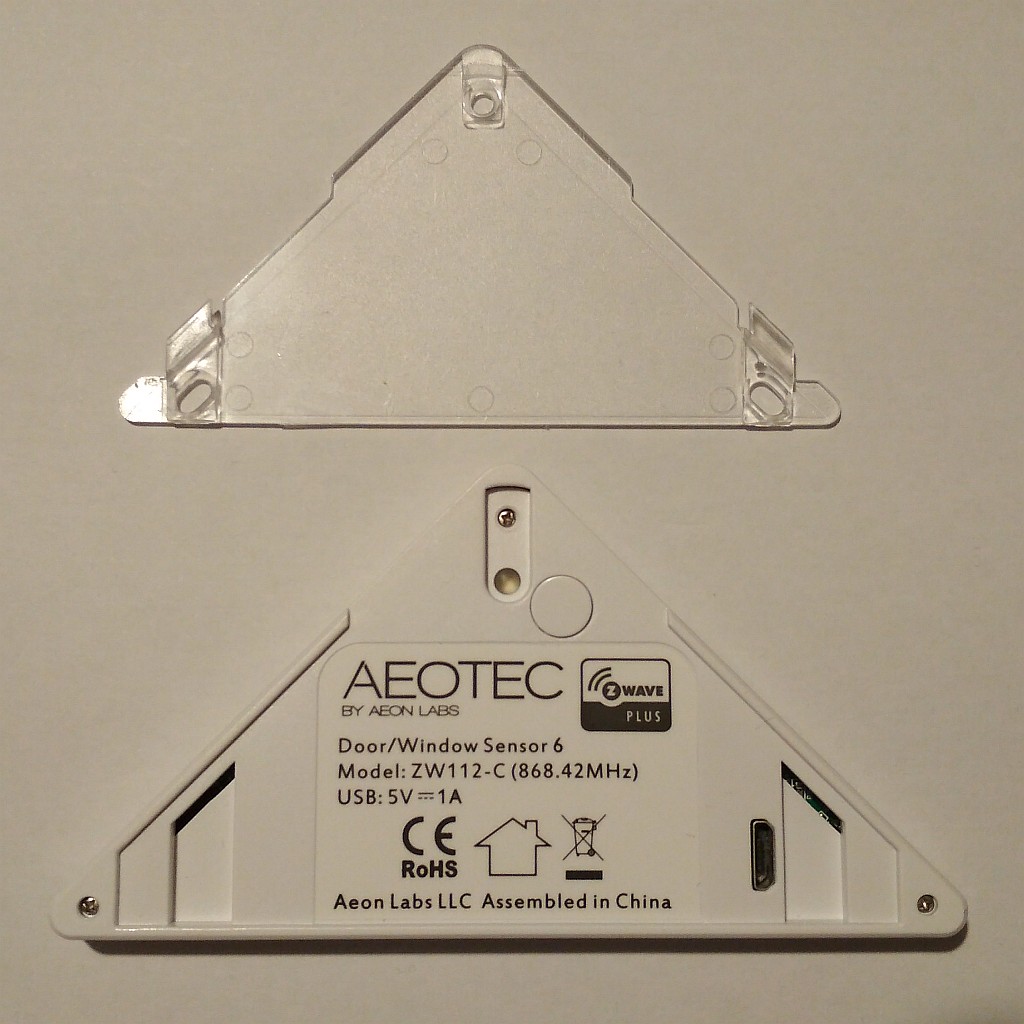 a aby być sprawiedliwym w kwestii jednorazowości - ich producent szacuje trwałość na kilka lat, w materiałach reklamowych mignęła mi liczba 10) oraz Aeotec ZW089 Recessed Door Sensor Gen5, który jest stosunkowo trudny w montażu i w zasadzie nadaje się tylko do drzwi (nie każdych!), swoją drogą zgodnie z nazwą [miejsce na link do wątku].Na rynek europejski jest przeznaczona wersja tradycyjnie dla tego producenta oznaczona przyrostkiem "C", czyli pełne oznaczenie modelu na nasz rynek to ZW112-C. Oficjalny opis producenta: https://aeotec.com/smallest-door-window-sensor Unikalne cechy: - źródłem zasilania jest wbudowany akumulator litowy 500mAh w/g producenta wystarczający na pracę bez ładowania przez co najmniej pół roku (przy czym materiały reklamowe podają 10 m-cy dla często otwieranych drzwi lub rok dla rzadko otwieranego okna, no cóż - czas pokaże i to mam nadzieję raczej nie prędko) - możliwość malowania obudowy z ABSu (fabrycznie jest biała matowa) zawartość zestawu (mimo wszystko warto przeczytać): - papierowa instrukcja (angielska) - czujnik otwarcia drzwi lub okna ZW122 (biały) - podstawa umożliwiająca montaż (przezroczysta i raczej nie należy jej malować - służy za "światłowód" dla LED RGB sygnalizującej stany) - oraz potrzebne do jej montażu 3 wkręty (raczej do ram drewnianych, mimo wszystko odradzam, urządzenie jest dość delikatne, a w razie mechanicznego uszkodzenia być może wymienimy na inne?) - lub taśma dwustronna w kształcie trójkąta (do wszystkich rodzajów ram/framug) - 2 magnesy w formie "pasków" o różnych wymiarach i sile przyciągania (do montażu wystarczy użyć TYLKO JEDEN z nich) są one koloru… czarnego (można je zamalować) - oraz potrzebna do montażu magnesów taśma dwustronna (tu nie ma innej opcji montażu) niestety z tego względu nie zainstalujemy tego typu czujnika posiadając metalowe ościeżnice… - krótki kabel USB->microUSB (do ładowania wewnętrznego akumulatora) Dane techniczne protokół: Z-wave plus firmware update: za pomocą kompatybilnych centralek wspierających OTA lub z poziomu windows za pomocą "modemu" Z-wave maksymalny zasięg w otwartej przestrzeni: 150m (hmm, kto będzie to używał w otwartej przestrzeni?) zasilanie: akumulator litowy 500mAh ładowanie: standartową ładowarką USB (5V, 1A) dopuszczalna temperatura pracy: 0°C - 40°C dopuszczalna względna wilgotność otoczenia: 8% - 80% stopień ochrony: IP20 z kilku ^powyższych parametrów wynika dość jasno jedno - jest to produkt do zastosowania wyłącznie w pomieszczeniach mieszkalnych rozmiary (jeśli będę miał czym zmierzyć lub znajdę w danych technicznych to poprawię, póki co przybliżone): czujnik (stanowi trójkąt równoramienny prostokątny o zaokrąglonych rogach) boki przyprostokątne 7,2cm przeciwprostokątna 10cm grubość ~0,9cm magnesy długość 3cm szerokość 0,5cm (słabszy) lub 1cm (mocniejszy) grubość ~0,15cm [miejsce na wrażenia użytkowe] parowanie z Vera UI7 w wersji 7.0.23 (konkretnie Vera Plus 1.7.3232) bezproblemowe nie lubuję się w "unboxingach", ale czasem warto zobaczyć "real foto" zawartość zestawu widok na podstawowe elementy składowe (sensor, mocowanie="stopka" i magnesy do wyboru) oraz sensor od spodu - można się przyjrzeć jak jest rozwiązane mocowanie (wsuwa się w przezroczystą "stopkę") widać okrągły przycisk (w górę i nieco na prawo od litery "C" z napisu AEOTEC), LED RGB (okrągły element w rogu ^ czujnika, w przetłoczeniu mocowania, na lewo od przycisku) i gniazdo ładowania - po prawej na dole (microUSB, dla ładowania trzeba zdjąć sensor z okna oczywiście) Mini-Howto ładowanie standartową ładowarką (5V, 1A) z gniazdem USB (za pomocą załączonego kabla) lub z końcówką microUSB (micro-B) ładowanie jest sygnalizowane pomarańczowym (raczej zielono-czerwonym, co widać gdy się go ma w ręce ) kolorem LED, który po naładowaniu do pełna zmienia się w czysty zielony (widać wtedy tylko jeden zielony komponent kolorystyczny diody, a nie 2 jak w trakcie ładowania)obsługa przycisku (raczej typowa dla wypustów Aeotec'a): parowanie/rozparowanie w trybie bez zabezpieczeń - pojedyncze wciśniecie przycisku + centralka we właściwym trybie parowanie/rozparowanie w trybie bezpiecznym - podwójne wciśniecie przycisku w czasie nie przekraczającym 1,5 sekundy + centralka we właściwym trybie wybudzenie urządzenia ze stanu uśpienia na 10 minut (np. w celu zmiany konfiguracji) lub ponowne uśpienie - przytrzymanie przycisku przez minimum 3 sekundy (w powyższych trybach sukces sygnalizuje zielony kolor LED przez 2 sekundy, porażkę - czerwony 2 sek., a wybudzenie migotanie na "pomarańczowy", czyli zielony równocześnie z czerwonym) factory reset - wciśnięcie przycisku na ponad 20 sekund (poprawnie wykonana procedura kończy się tęczowym wyświetlaniem kolorów RGB przez wbudowaną LED, a pełna sekwencja LED od momentu wciśnięcia przycisku, to "pomarańczowy", "różowy", migający coraz szybciej czerwony, zielony i dopiero na koniec "tęcza", czyli płynne zmiany kolorów i dopiero teraz można puścić przycisk) w normalnym trybie pracy zmiana stanu (otwarte<->zamknięte) to krótki błysk LED w kolorze niebieskim podobnie jak wszystkie inne podobne czujniki należy montować w miejscu niedostępnym dla dzieci (raczej u góry framugi), po przeciwnej stronie niż zawiasy (dla okien uchylno-rozwiernych należy kierować się logiką czyli montujemy czujnik, tak by sygnalizował każdy sposób otwarcia)Linki pełna dokumentacja ZW122: https://aeotec.freshdesk.com/helpdesk/at...6052990275 instrukcja online: https://aeotec.freshdesk.com/support/sol...ser-guide- oraz całe pozostałe samoobsługowe wsparcie techniczne ZW122:https://aeotec.freshdesk.com/support/sol...6000214492 (artykulik dotyczący współpracy z Vera, jest mało aktualny - obecnie w aktualnym firmware parowanie działa poprawnie i jest gotowy szablon dla t