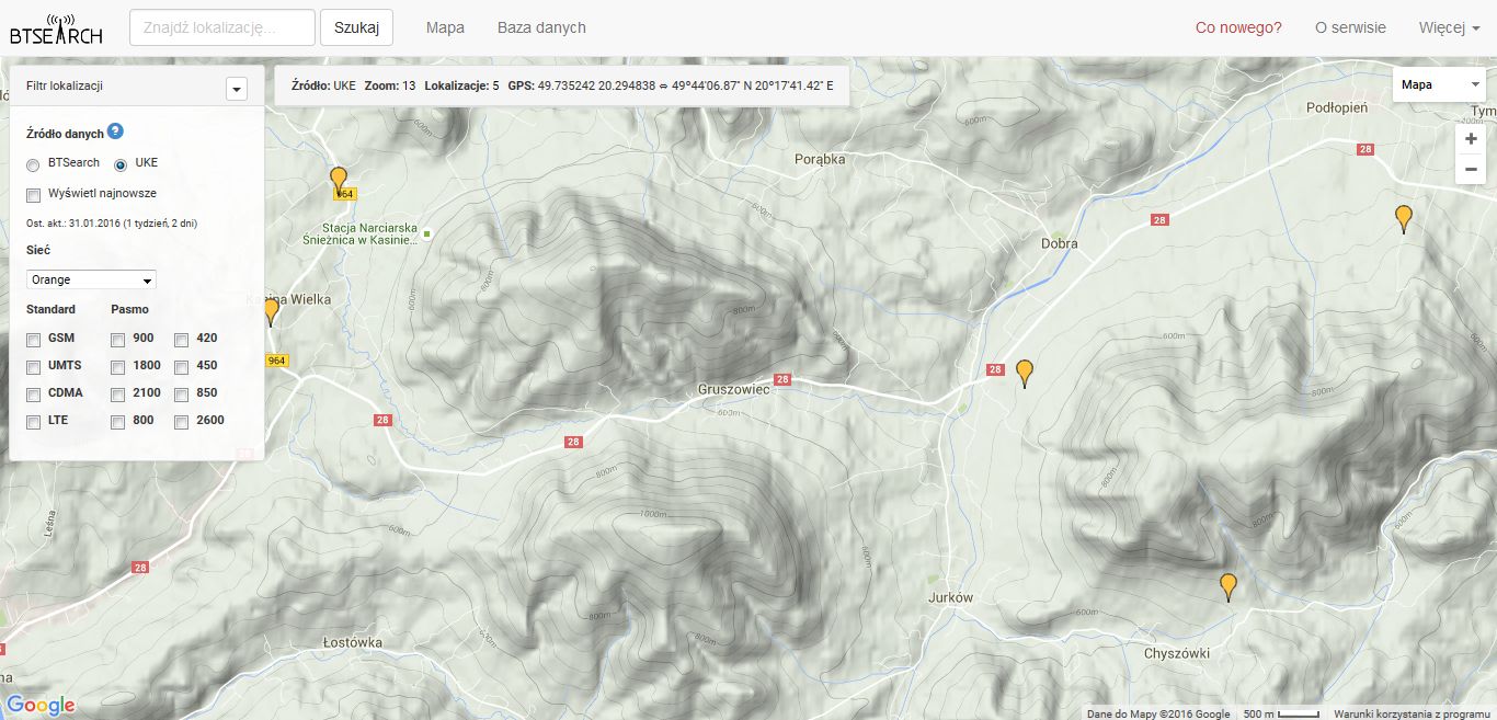 jakkolwiek nie miałem go w ręce, więc może coś wymyślimy jeśli wrzucisz screenshoty z webui (szansa mała na to aby były zaawansowane ustawienia w sprzęcie brandowanym na Orange, ale spróbować nie zaszkodzi) jeśli masz szansę od kogoś pożyczyć modem z możliwością wyboru pasma (czyli mówiąc inaczej w zasadzie producentem powinien być Huawei, a modem albo "tradycyjny", albo hilink, ale tylko taki z opcjami wyboru) to byłoby wskazane, abyś skorzystał z wymuszenia poszczególnych pasm i na tej podstawie ocenił faktyczny zasięg u siebie http://beta.btsearch.pl/?dataSource=ukel...38&zoom=14 prawdopodobnie masz zasięg ze stacji bazowej, którą widać na screenshocie w/g pozwoleń jest na niej zarówno 3G w obu pasmach tj. 900MHz i 2100MHz jak i LTE 1800MHz (ale co jest w praktyce musisz ocenić sam udając się bliżej w jej okolice, a przez użytkowników btesearch potwierdzone jest działanie w paśmie 900 ale to nie muszą być aktualne dane) Statystyki Folding@home |