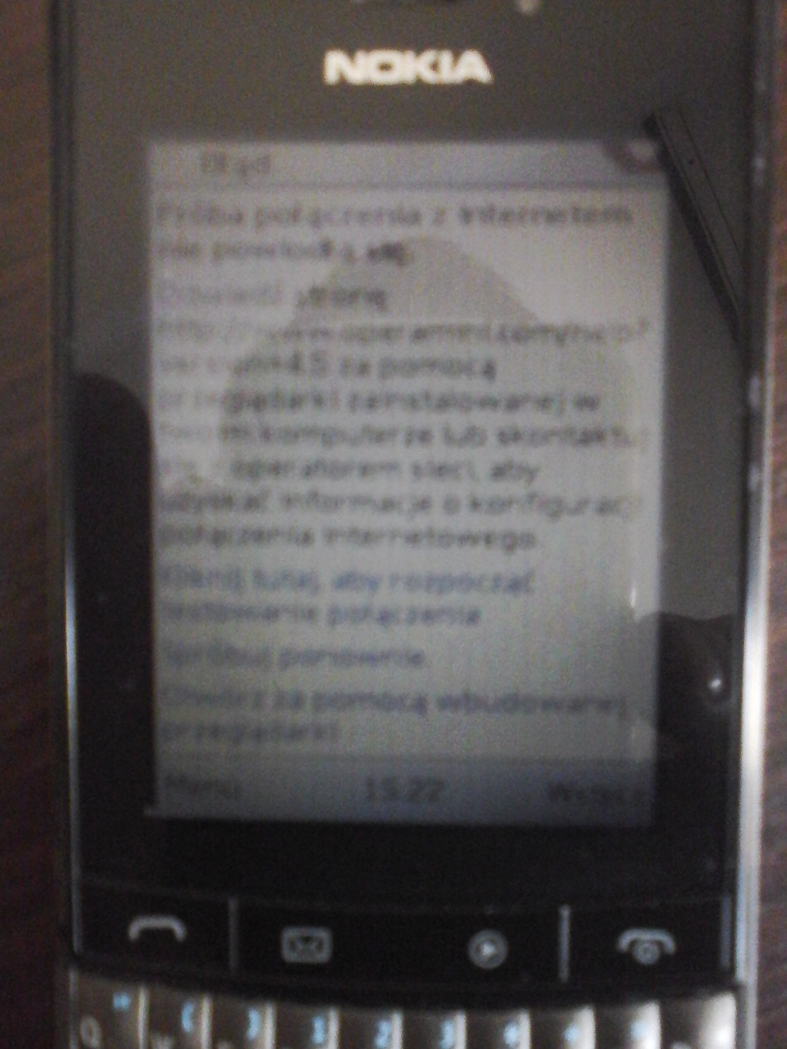 Czy istnieje jakaś aplikacja/oprogramowanie/przeglądarka dla systemu Nokia OS, która wspiera Captche Aero2? Mam Nokie Asha 303 i łącze się przez wi fi z internetem Aero za pomocą routera mobilnego ZTE MF63. Wszystko pięknie do czasu zerwania połączenia - w przeglądarce Opera Mini v 4.5 nijak nie mogę wyświetlić strony http://bdi.free.aero2.net.pl:8080 z Captchą i ponownie go nawiązać. Próbowałem w innej przeglądarce dla tego telefonu - UC Browser ale występuje ten sam problem. Czy ma ktoś wskazówki jak rozwiązać ten problem, czy pozostaje kupno innego telefonu? (Nawiasem mówiąc - zauważyłem że od kiedy ten model Nokii nie ma już wbudowanej przeglądarki, bo zastąpiono ją właśnie nieszczęsną Operą Mini, jest problem z otwieraniem niektórych stron, np. odtwarzaniem filmów z Youtube przez wi-fi - niby film się "ładuje" po czym pojawia się informacja Brak odpowiedzi-ponów próbę...) |