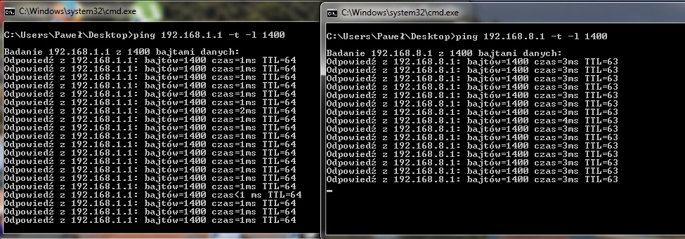 OK, koniec testów z 5372, który był na 1m przedłużce USB. Używałem ponad 3 tygodnie i zero zawiechy. Chodzi bardzo ładnie i stabilinie z tym Asusem. Przed chwilą założyłem z powrotem 3372 na 80cm przedłużce USB. Co ciekawe porównałem po raz kolejny pingi do modemu i zawsze jest tak samo. Otóż pingi są o wiele szybsze do 5372 niż do 3372 co widać na załączonym obrazku. Dlaczego tak się dzieje?
