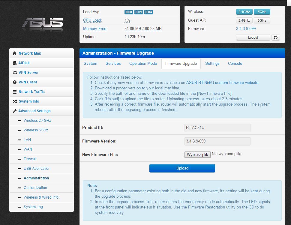 Żeby wrócić do firmware Asusa, mówiłeś że trzeba to robić przez firmware recovery. Czyli jak bym w obecnym padavanie wskazał asusowski plik do upgrade'u to nie pójdzie? Zepsuje się coś?