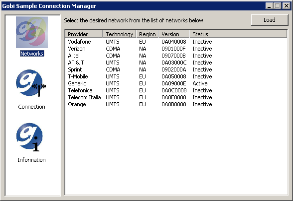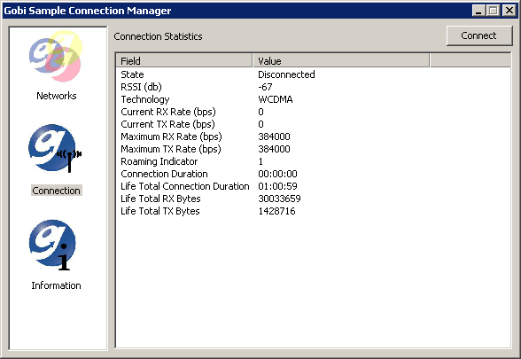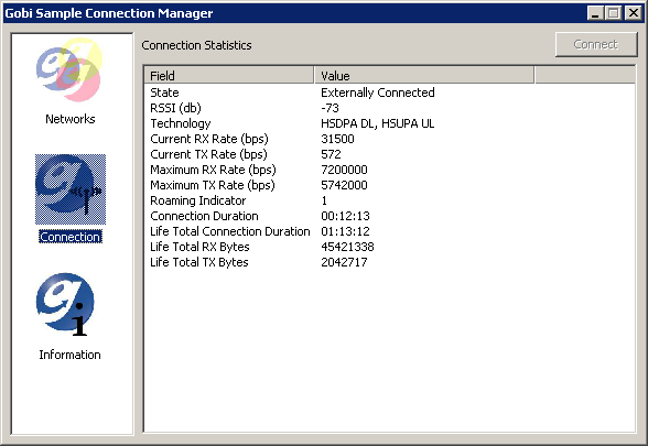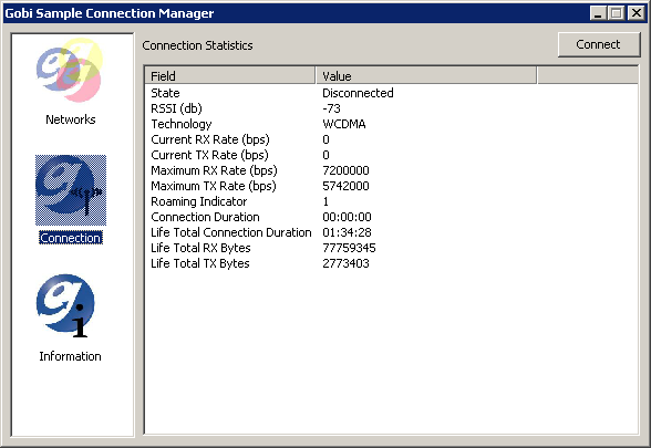 ten menadżer połączenia działa tylko z kartami Qualcomm Gobi1000 (niezgodna z Aero2), Gobi2000 i Gobi3000 (i pochodnymi brandowanymi) jest to jeden ze składników SDk dla wybranego modelu karty