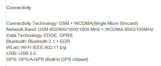 "(...) Connectivity Technology: GSM + WCDMA(Single Micro Simcard) Network Band: GSM 850/900/1800/1900 MHz + WCDMA 850/2100MHz (...)" *BRAK 3G/UMTS/WCDMA 900 = nie obsługuje. Jeśli chodzi o specyfikację "czegokolwiek" z elektroniki najlepiej szukać informacji na "stronach producentów" jeśli rzecz jasna takowe istnieją