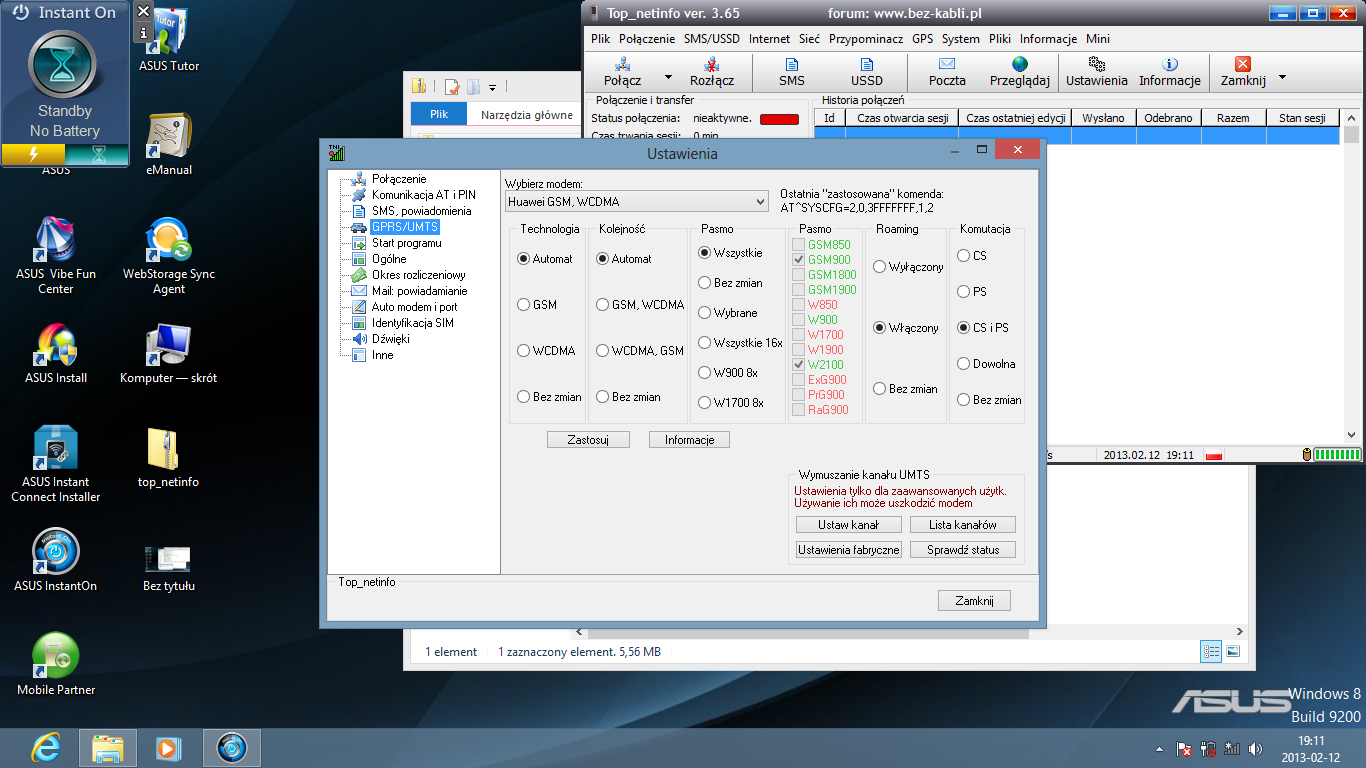 Zamówiłam ten modem. Dzisiaj próbowałam podłaczyć, Wymusiłam UMTS 900 MHz, ale dalej nie działa. Nie wiem czy to nie jest wina tego, że mam Windows 8 ?