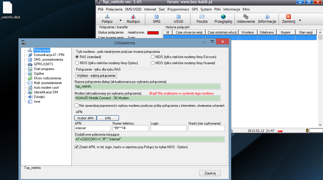 ma być słowo darmowy a nie internet ale tu widać jeszcze coś dodatkowego - nie odnaleziono modemu! (przypuszczam, że równocześnie uruchomiony jest Mobile Partner i TNI a może być w danej chwili tylko jeden program sterujący modemem, przy czym zwolnienie zasobów trwa kilkanaście sekund po zamknięciu programu więc pośpiech nie jest wskazany) Statystyki Folding@home |