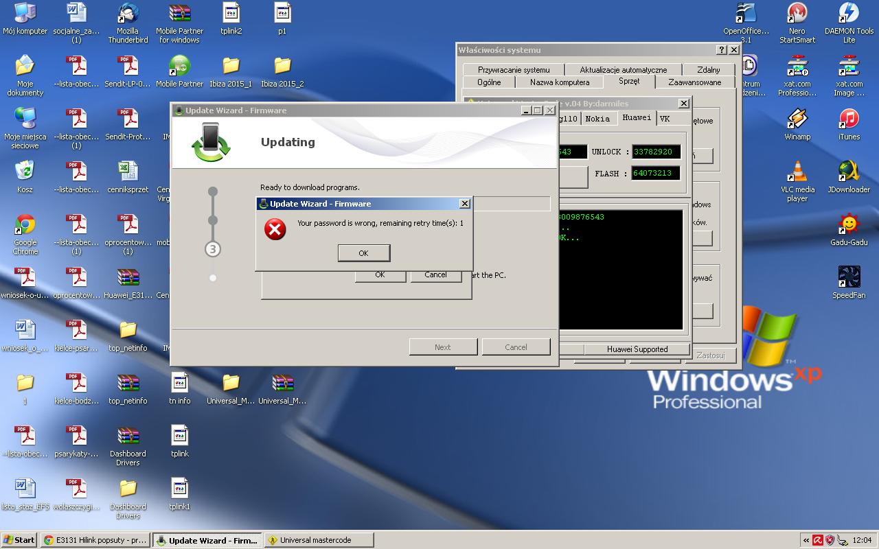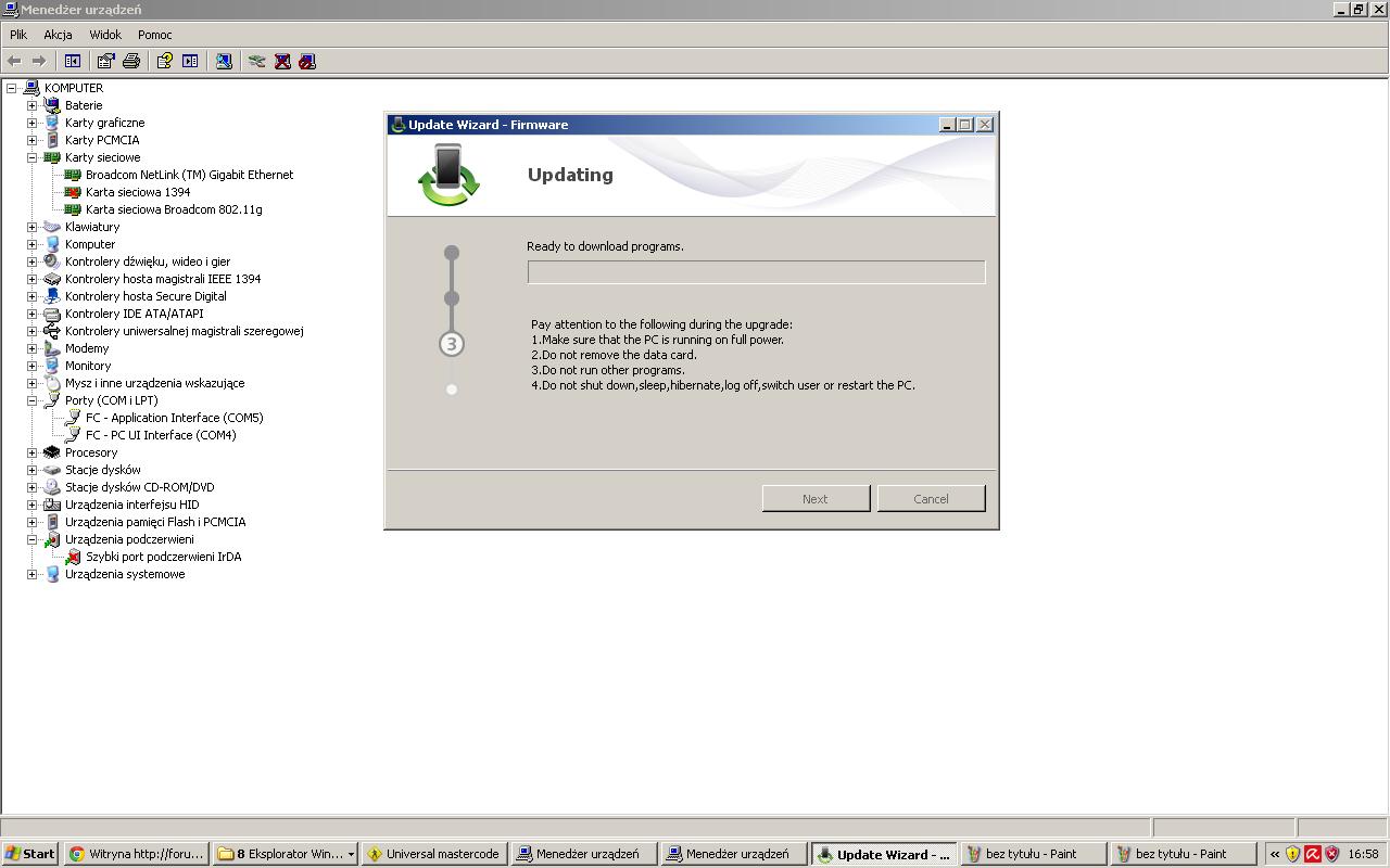 Podałem go i przyjął ale nie zmienił sie w "HUAWEI Mobile Connect - 3G PC UI Interface" tylko został jako "FC - PC UI Interface". Potem program do flashowania wywala ten sam bład. Głupie pytanie: czy musze miec połączenie z internetem? cos tam widze download i mnie zastanawia... |