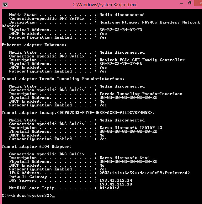ipconfig /all