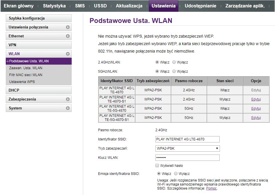 2. tu wyłączysz lub włączysz każdy z AP wbudowanych w Huawei'a, możesz też ustawić własne SSID (wcale nie musi być PLAY……… z krzakami na końcu)