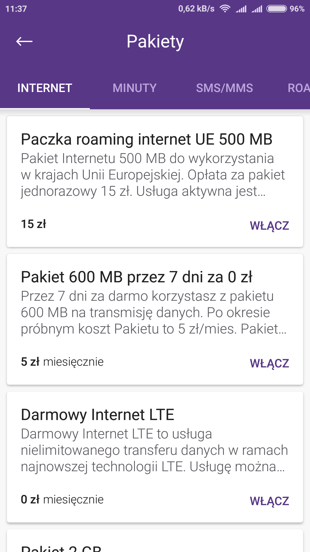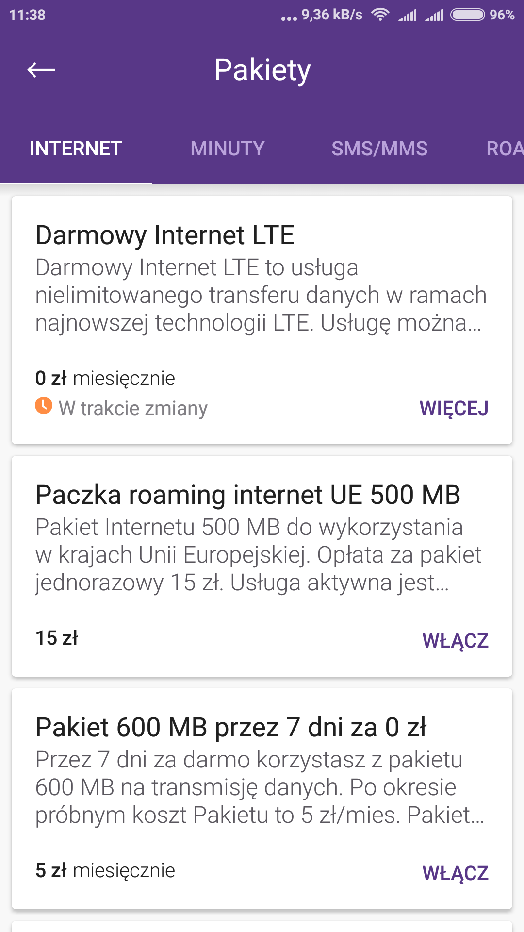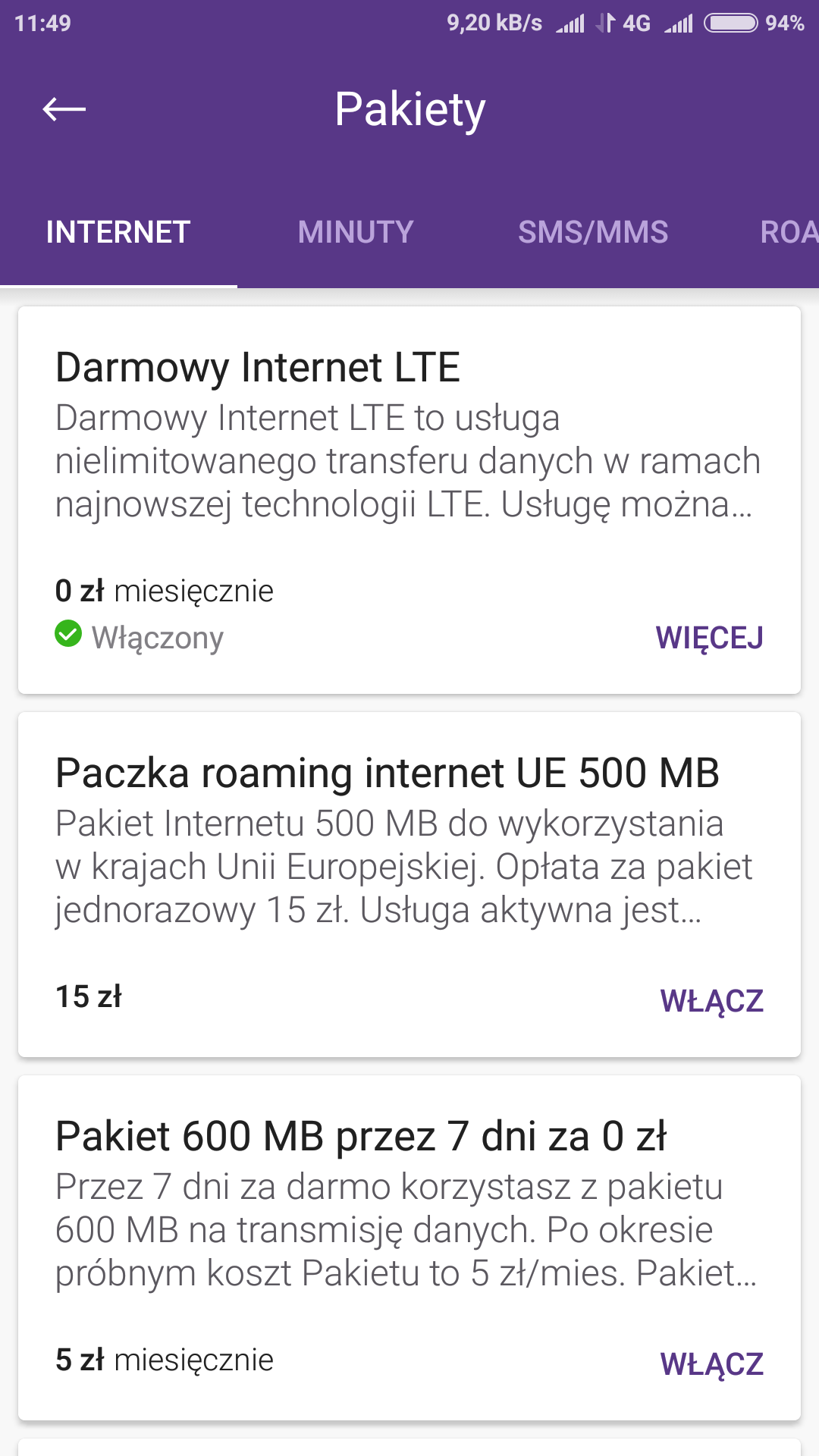 wyczyściłem dane aplikacji, zalogowałem się ponownie i dalej to samo, w aplikacji brak "darmowego LTE" a na stronie 24.play jest.