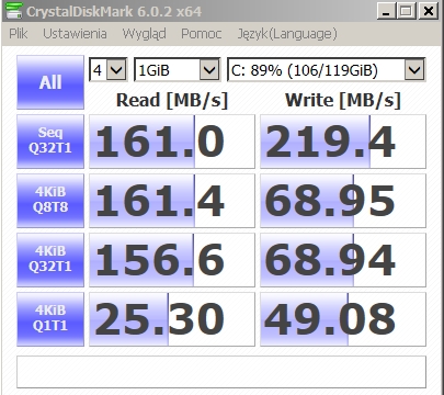 Był czas, że grzebałem w biosach - modowane biosy mam w blaszaku, który dziś się kwalifikuje już wyłącznie na śmietnik (a trzymam go raczej tylko z sentymentu - Asus P3B-F - to chyba jedna z płyt od których się zaczęła moda na ekstremalne OC - tam np. na przeciętnym procku dało się podnieść fsb o 100%! oczywiście redukując inne zegary) na tej płycie przez kilka lat tylko zmieniałem procki, a kwestię nowszych generacji załatwiały przejściówki na slot1 (no i grzebanie w BIOSie), robiłem to wtedy też dla znajomych jeśli chcieli i mieli odwagę, ostatni mod BIOSa mam w… starawym netbooku - tam dla czystej przyjemności sobie podmieniłem logo startowe (aby był inny niż wszystkie). Dobra wracam do tematu - "pod młotek" poszły 2 sandiski USB3.0 16GB Ultra Flair SDCZ73 - jego wydajność jest naprawdę spasiona przy odczycie, ale zapis przeciętny (tzn. równie dobrze mógłby to być pendrajw USB2.0 i by to wiele nie zmieniało) SanDisk_Ultra_Flair_16GB_MSIP-REM-TAD-SDCZ73 Ultra SDCZ48 - ten to mógłby być wypuszczony jako USB2.0 chyba zupełnie bez utraty wydajności ;D edit: kurza twarz akurat trafiłem na egzemplarz z "rześkiej" serii i ma całkiem ładne wyniki, choć oczywiście zapis kuleje SanDisk_Ultra_16GB_KCC-REM-TAD-SDCZ48-16G edit2: przechwaliłem go - właśnie skończył żywot w trybie tylko do odczytu (prawdopodobnie przegrzał się)Kod: USB Device ID: VID = 0781 PID = 5581kwestia jest taka, że Sandisk pod dokładnie tym samym oznaczeniem modelu wypuszcza sprzęt z różnymi flakami, więc sposób pracy i wydajność jest różna w zależności od serii (żałuję, że nie zrobiłem kolekcji benchmarków z jednego modelu we wszystkich wariantach, które do mnie trafiły, bo różnice wydajności między seriami to widać już "gołym okiem", no ale to sprzęt służbowy więc i tak nie miałem wyboru - były jakie były…) PS dorobiłbyś jeszcze SS ze współczesnego CDM (3.x to już zabytek) i wypada ustawić chociaż po 3 testy 1GB (taka konfiguracja jest w miarę powszechna) a nie 1x 500MB (tu brakuje uśrednienia wyniku, a zbyt mały plik się mieści w całości w szybszym buforze w niektórych pendrive), hmm no i nie ma co żydzić na zapisach - benchmark się robi "raz w życiu" a potem co najwyżej ogląda wyniki ![]() Przy okazji kwestia xeona - w pracy jednowątkowej jest nieco wolniejszy od mojego zdecydowanie nienajświeższego procka w laptopie (i5 pierwszej czy 2? generacji bodajże) , a w wielowątkowej bije go mocą obliczeniową gdzieś o połowę (oczywiście porównanie oparłem na passmarku, można też zrobić syntetyczny test w CPU-Z), więc może pomysły z laptopowymi i7 do desktopa nie są wcale słabe (choć sam się zastanawiam czy jest sens pompowania kasy w blaszaka, bo zamiast HTPC zrobiłbym z tego normalny komputer, ale po staruszku to tam tylko obudowa z zasilaczem jest do wykorzystania…) Statystyki Folding@home |