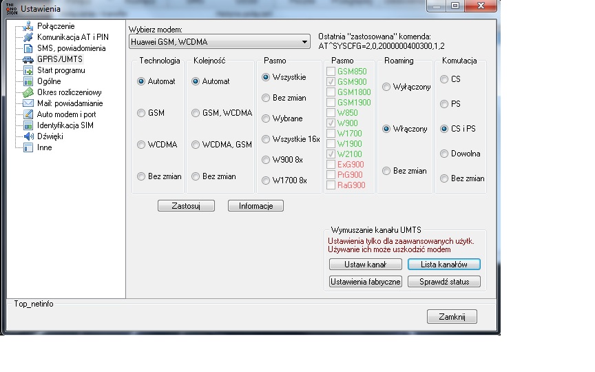 Zmierzyć sygnał można za pomocą modemu Huawei przez wymuszanie poszczególnych pasm.