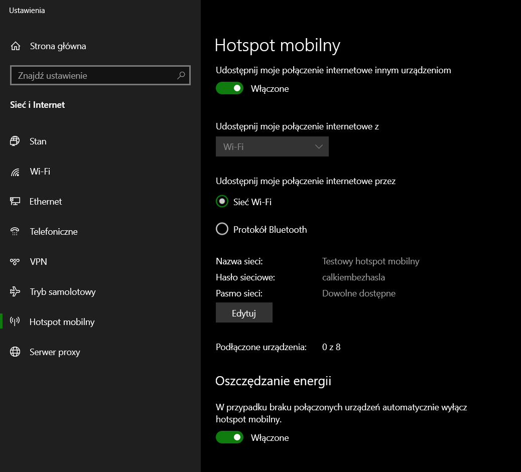 RE: Nie można udostępnić sieci Aero2 jako Hot-Spot