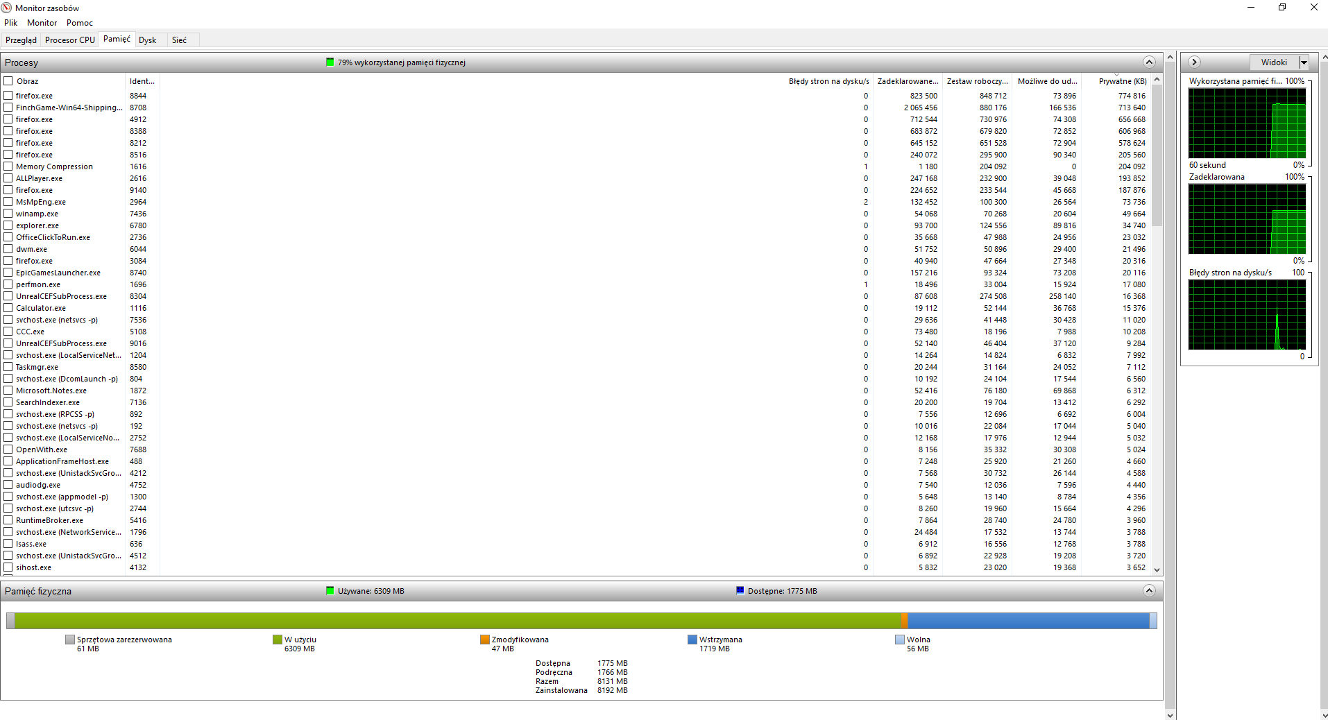 Co do obrazka powyżej nadal wolnej pamięci masz zaledwie kilkadziesiąt MB - czyli do pracy w ten sposób wciąż możesz użyć większej ilości pamięci niż obecnie masz zainstalowane (mogłeś kupić 2x 8GB no ale wiem, że wydawanie kasy z cudzej kieszeni jest dość łatwe nie pamiętam czy masz więcej niż 2 sloty, ale jeśli tak to dołóż jeszcze swój stary moduł - chwilowo stracisz dual, ale zobaczysz czy system użyje więcej).przykładowy zestaw SS wrzucam do załączników (to archaiczny laptop, ale memorki pracują w dualu w optymalny sposób, co objawia się informacją "dual symmetric", nieoptymalne konfiguracje to "single" lub "asymetric"; "dual rank" z zakładki SPD nie ma nic wspólnego z pracą w dualu) Można też opublikować wynik online (przycisk validate), ale wtedy nie zawiera on wielu istotnych informacji https://valid.x86.fr/yfsf3w i ten sam sprzęt, ale inne pamięci (pracują identycznie, ale mają inne wpisy SPD screenshoty może później lub na docelowym sprzęcie) https://valid.x86.fr/part16 Statystyki Folding@home |