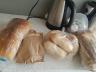 Zrobiłem zdjęcie dla porównania z czajnikiem około 2l, jakie te bułki czosnkowe są wielkie i chleby, a w papierowej tutce "ukryta" drożdżówa z makiem, pyszna jak za dawnych czasów i też taka duża jak były kiedyś. czyli teraz buły po 0,70 PLN, chleby żytnie (ale akurat nie razowe) po 3,80 PLN, a drożdżówka za 2,60 PLN. |
