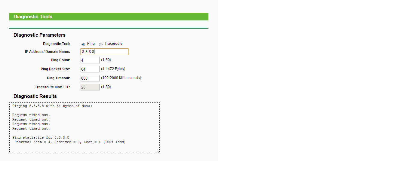 Teraz kolejny etap - interfejs routera na pewno możesz przy tej awarii otworzyć. Zrób to. Tam masz opcje diagnostyki i z poziomu routera zrób ping do adresu 8.8.8.8 |