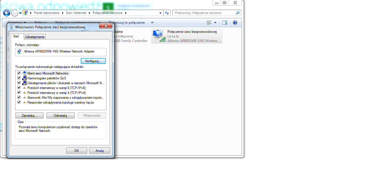 czy wystarczy w ten sposób odznaczenie opcji (TCP/IPv6) (jak na screenie)