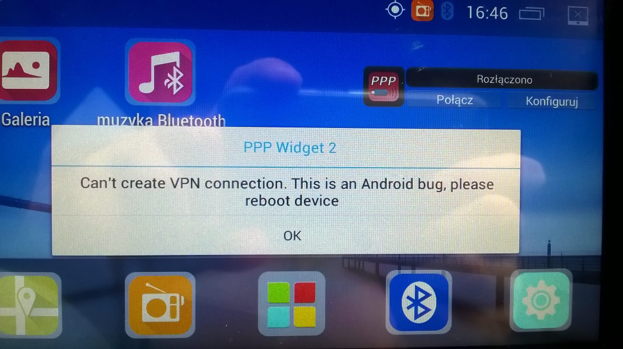 Posiadam stacje multimedialna Ezonetronics RM - CT0009 , stacja obsluguje modemy 3g i taki chcialem zalozyc , po zainstalowaniu ppp widget 2 i konfiguracji wyskakjuje błąd Cant create VPN conncection.This is an Android bug , please reboot devuce uzylem do tego modemu huawei e173u-2 ktos wie jak rozwiazac ten problem ? |