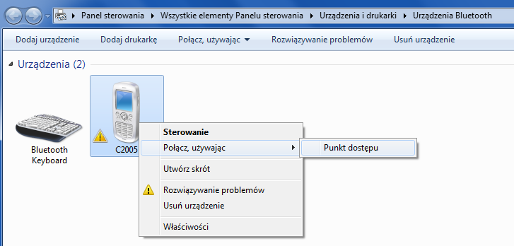 Natomiast udostępnianie internetu działa świetnie po Bluetooth PAN (w Androidzie nie stosuje się Bluetooth DUN, bo to uniemożliwia współdzielenie łącza dla telefonu i komputera jednocześnie). 1. Parujesz ze sobą urządzenia (wreszcie w Win10 weszło to do języka - parowanie zamiast łączenia i innych mylących pojęć) 2. Włączasz w telefonie z Androidem funkcję Udostępnianie Internetu - Router Bluetooth (może być w innym miejscu, ostrzegam) 3. Idziesz do czegoś, co w Windows nazywa się "Urządzenia i drukarki". W dziale "Urządzenia" jest twój telefon. Prawoklik-> "Połącz, używając" -> "Punkt dostępu" I masz po chwili połączenie. Zalety: niski pobór mocy zwłaszcza w porównaniu z połączeniem przez fifirifi (WiFi). Wady: ograniczenie prędkości do około 1,2 Mbit/s, znacznie mniejszy zasięg niż przy WiFi Faktycznie w czasach przedandroidowych używałem tego często do udostępniania łącza, potem już prawie wcale (WiFi jest jednak prostsze w użyciu), ale ciągle jest i działa świetnie. |