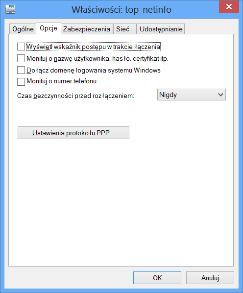 W Windows 8 mam ustawione: czas bezczynności przed połączeniem - nigdy.