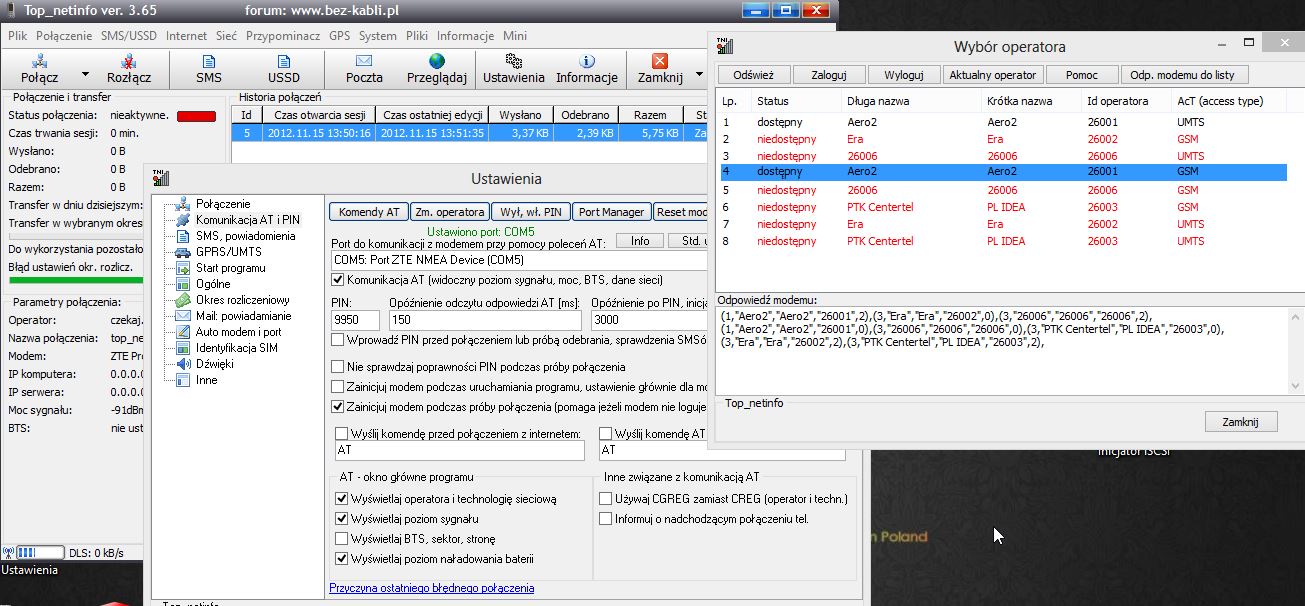 i jakos niechce działac ;/ ustawienia apn darmowy lapie siec 26006 a to aero prawda ?? raz moze mi znalazlo siec aero2 + nie wiem w czym tkwi problem ale na chwile laczy i za chwile rozlacza sie ;/ dioda swieci na niebiesko wlasnie polaczyl sie z plus 3g az boje sie rozlaczyc ze nie bedzie znowu chodzil