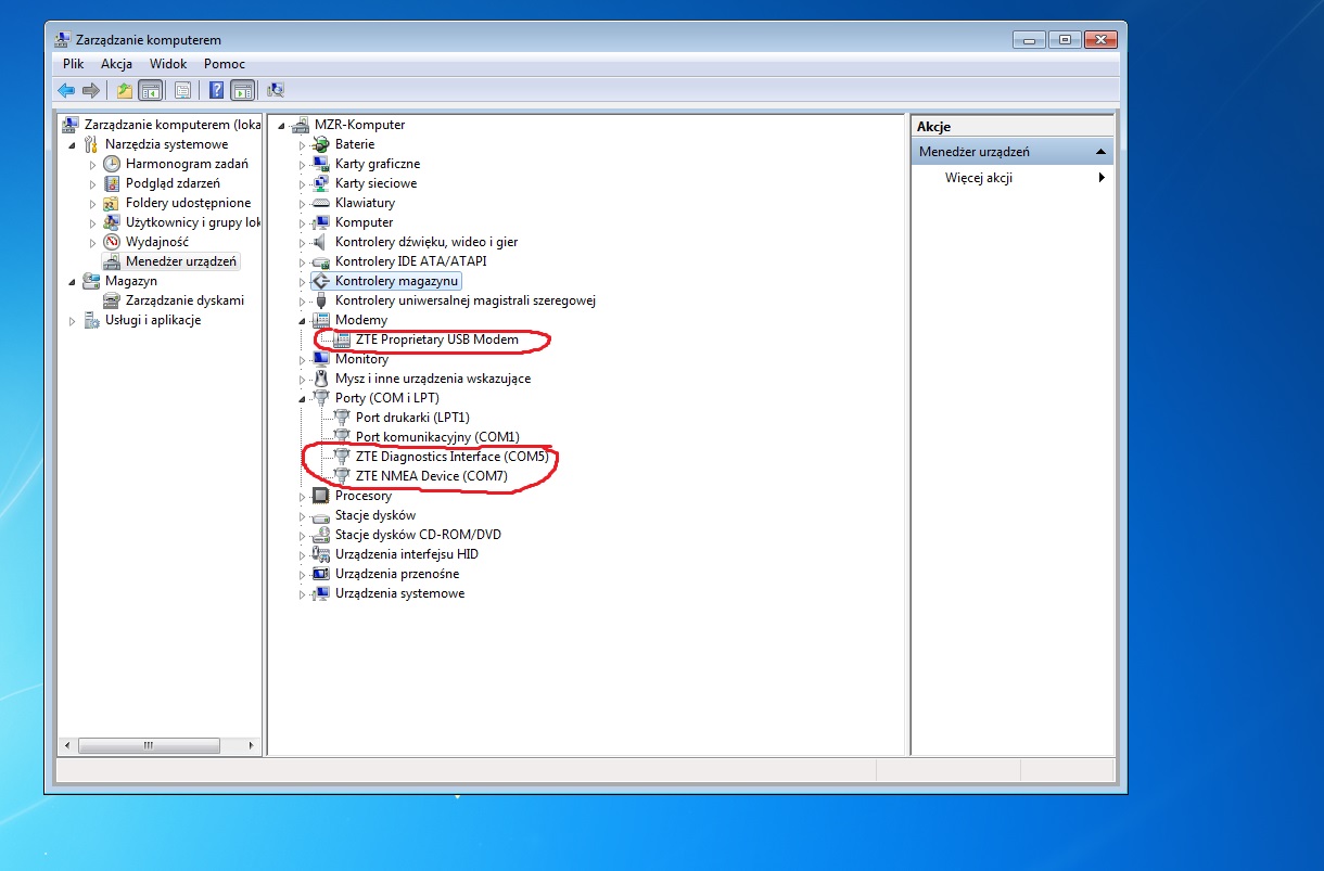Pd wielu lat czytam informacje na forum, które zawsze mi pomagały w uruchamianiu kolejnych modemów na Aero. Niestety wpadłemw dołek z którego się nie mogę wygrzebać. Otóż od wielu miesięcy używam modemu MF823 z Megafona w Plusie. Podłączony był do Mikrotika 751u-2hnd. Działał bez zarzutu i był widziany przez Mikrotika jako interfejs LTE czyli jak rozumiem pracował w trybie routera. Tak było do tydzień wstecz. Spontanicznie przeszedł w tryb modemu ( jak mniemam ). Słowo daję, że nic z nim nie robiłem. Zasadniczo nie katastrofa bo Mik zobaczył go jako modem, odpala interfejs PPP i net hula. Występuje jednak pewien problem związany z restartem prądowym routera, którego tu nie będę rozwijał bo to nie właściwe miejsce. Chciałbym wrócić do trybu routera ale jakoś mi to nie idzie. Zamontowałem MF823 na maszynie z Win10 64 bit. Po początkowych problem z brakiem sterownika, doznałem olśnienia i odpaliłem na sterownikach Smartfona Xiaomi Redmi 3 ( sprzęt na Qualcommie ). Windoza szczęśliwie zobaczyła kilka portów: ZTE diagnostics interface (COM4) ZTE nmea device (COM5) ZTE proprietary USB modem - pracuje na porcie COM6 We właściwościach/diagnostya/zapytanie reaguje: ATQ0V1E0 - OK AT+GMM - MF823 AT+FCLASS=? - 0,2.0 AT#CLS=? - POLECENIE NIEOBSŁUGIWANE AT+GCI? - POLECENIE NIEOBSŁUGIWANE AT+GCI=? - POLECENIE NIEOBSŁUGIWANE ATI1 - Manufacturer: ZTE CORPORATION Model: MF823 Revision: BD_MF823HDV1.0.0B03 IMEI: 866948015413795 +GCAP: +CGSM Czyli na pozór fajnie jak na razie. Gdy odpalę Putty na COM6 by go ustawić poleceniami z tego wątku to klapa. ciemność widzę, ciemność. Nie mogę nawiązać sesji. Coś źle robię ? |